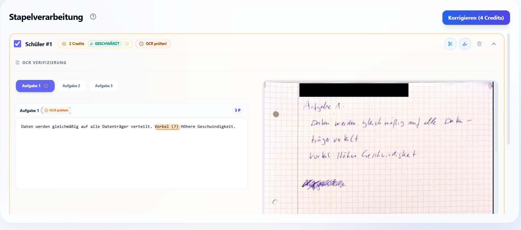 Unsere OCR nutzt hochmoderne KI-Modelle, die speziell auf verschiedene Handschrift-Typen trainiert wurden, um maximale Präzision zu gewährleisten.