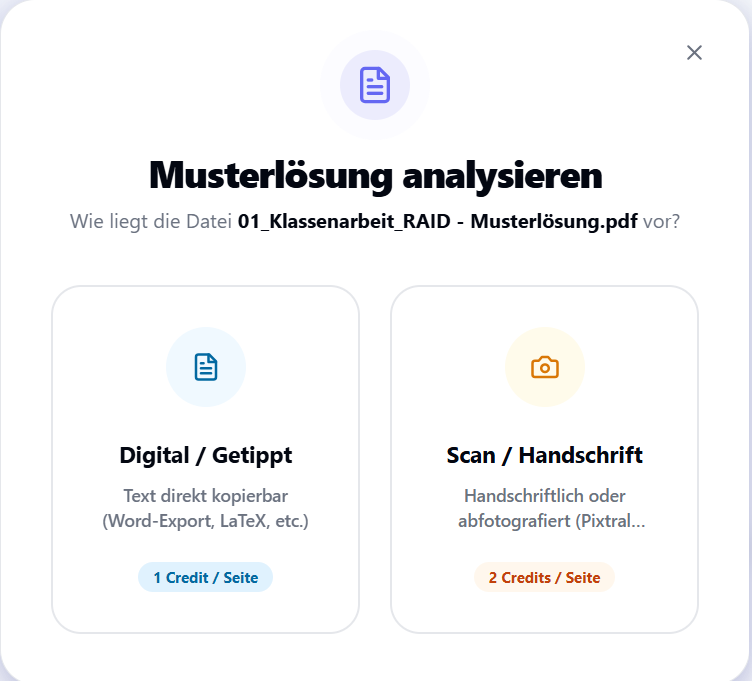 Im Experten-Modus können Sie eigene Prompt-Profile erstellen. Damit geben Sie der KI spezifische Anweisungen für unterschiedliche Fächer oder Bewertungskriterien vor.
